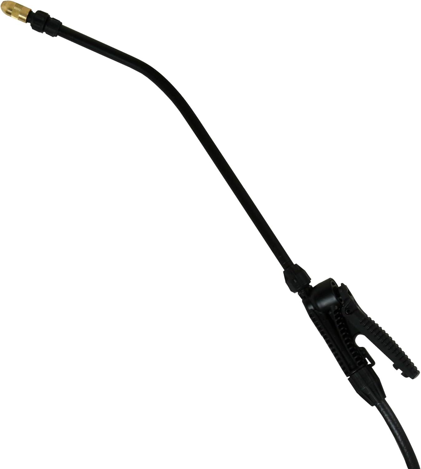 COMPONENTS: reach further with the 18-inch curved, poly extension wand and 34-inch PVC hose; measuring cup and spray shield are included to accurately measure chemical and protect areas you don’t want to spray; brass adjustable nozzle to spray a stream to a shower when needed