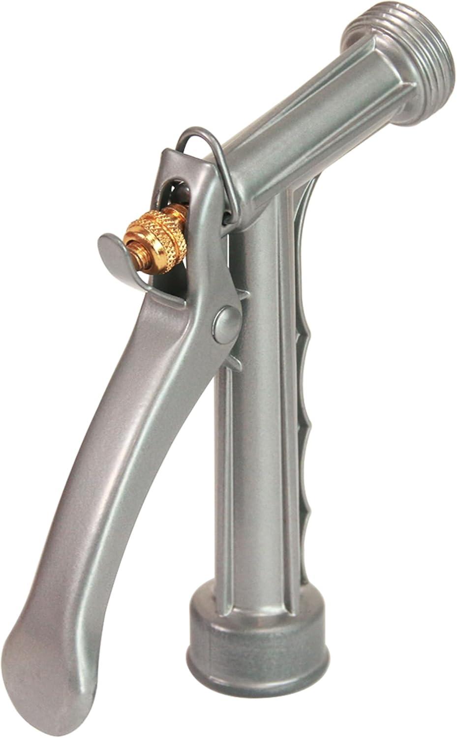 imageChapin 4603 Cast Metal Garden Hose Spray Nozzle with Rear Trigger Grip Threaded Connection Fits Standard Garden Hose for Gardening Landscaping Watering and Outdoor Jobs Silver