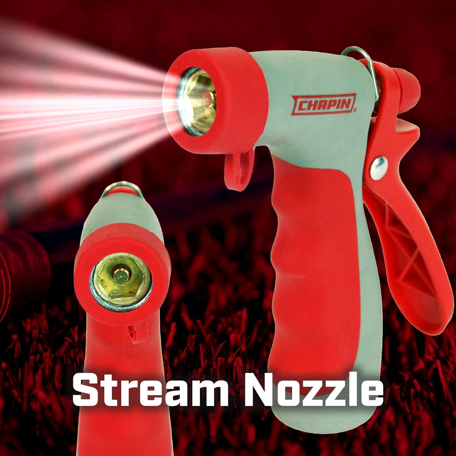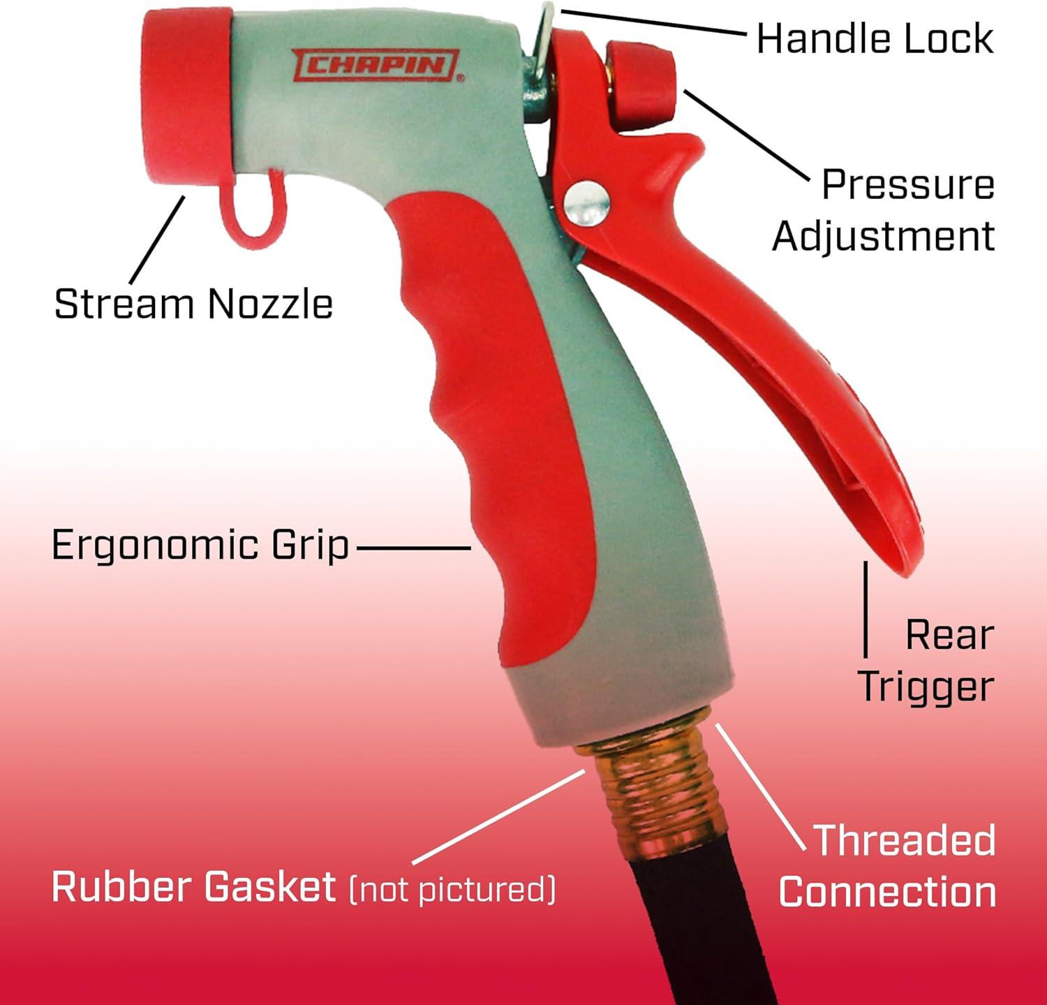 Chapin 4693: High Temp, Hot Water Pistol Grip Spray Nozzle with Threaded Connection, Stream Spray for Cleaning, Washing Cars, Watering and Outdoor Jobs, Red/Black(Front Grip)
