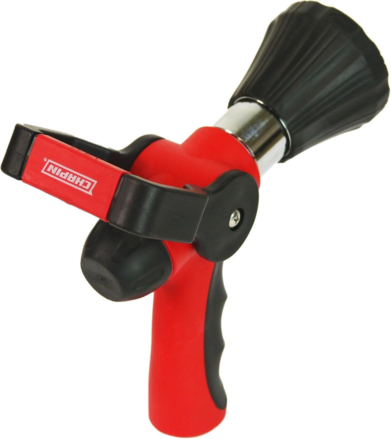 Chapin’s 4699 fireman-style water cannon hose nozzle is ideal for outdoor cleaning applications, washing cars, and general gardening and landscaping. The large lever makes it easy to turn the water on or off and the ergonomic grip is more a like standard garden hose nozzle so you hold it with one hand. It’s constructed of thermoplastic rubber coated zinc with a rubber washer so it handles everyday outdoor use and is leak free to keep a consistent water spray. Adjust the spray by twisting the large nozzle from a heavy straight stream to shower. Fits standard hoses with a threaded connection. Genuine Chapin irrigation accessory and backed by a 1-year limited warranty.