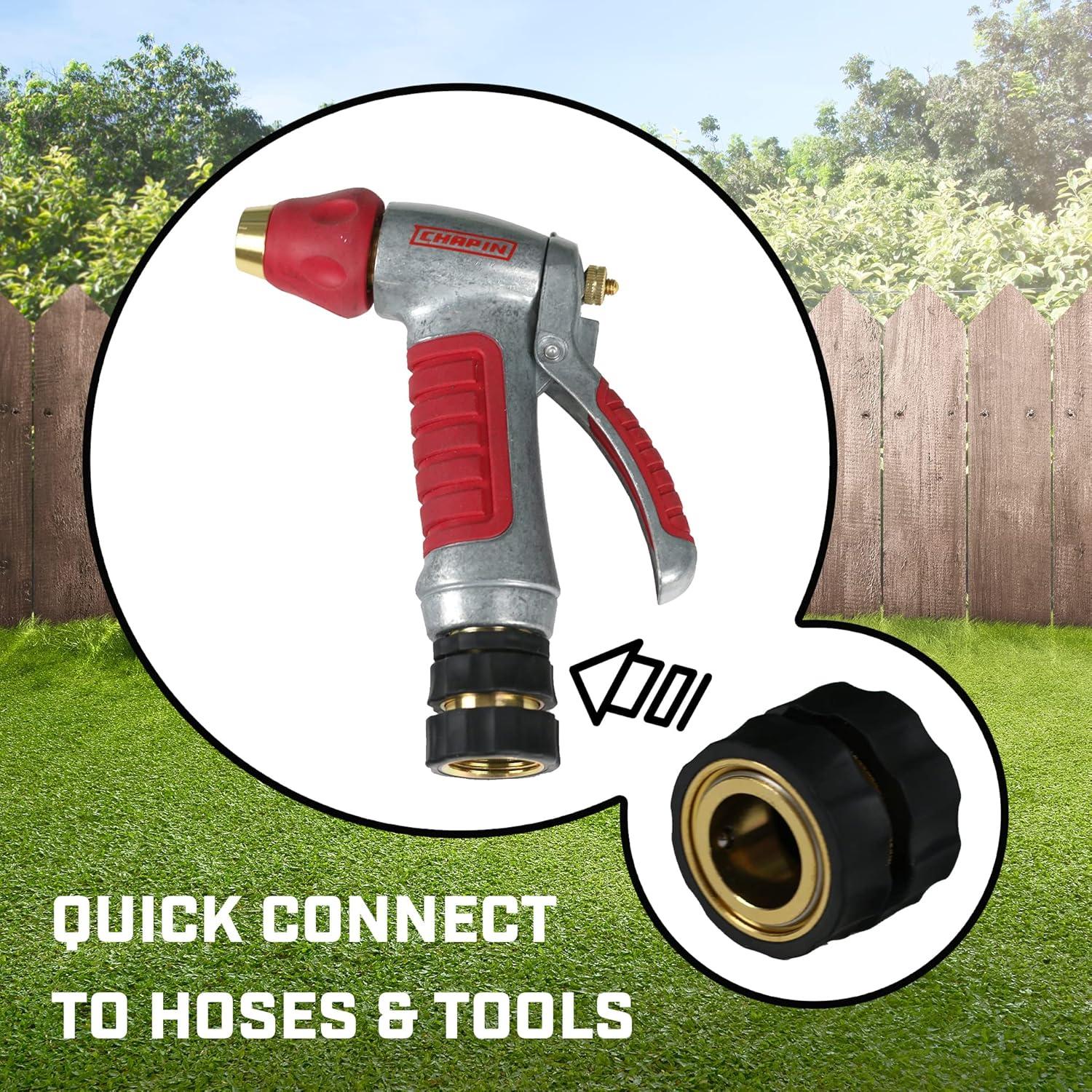 Swap out garden tools easily with Chapin's 6-9465 2-piece quick connect hose assembly. Attach the coupling to the end of the hose and the adapter into your favorite watering tool.