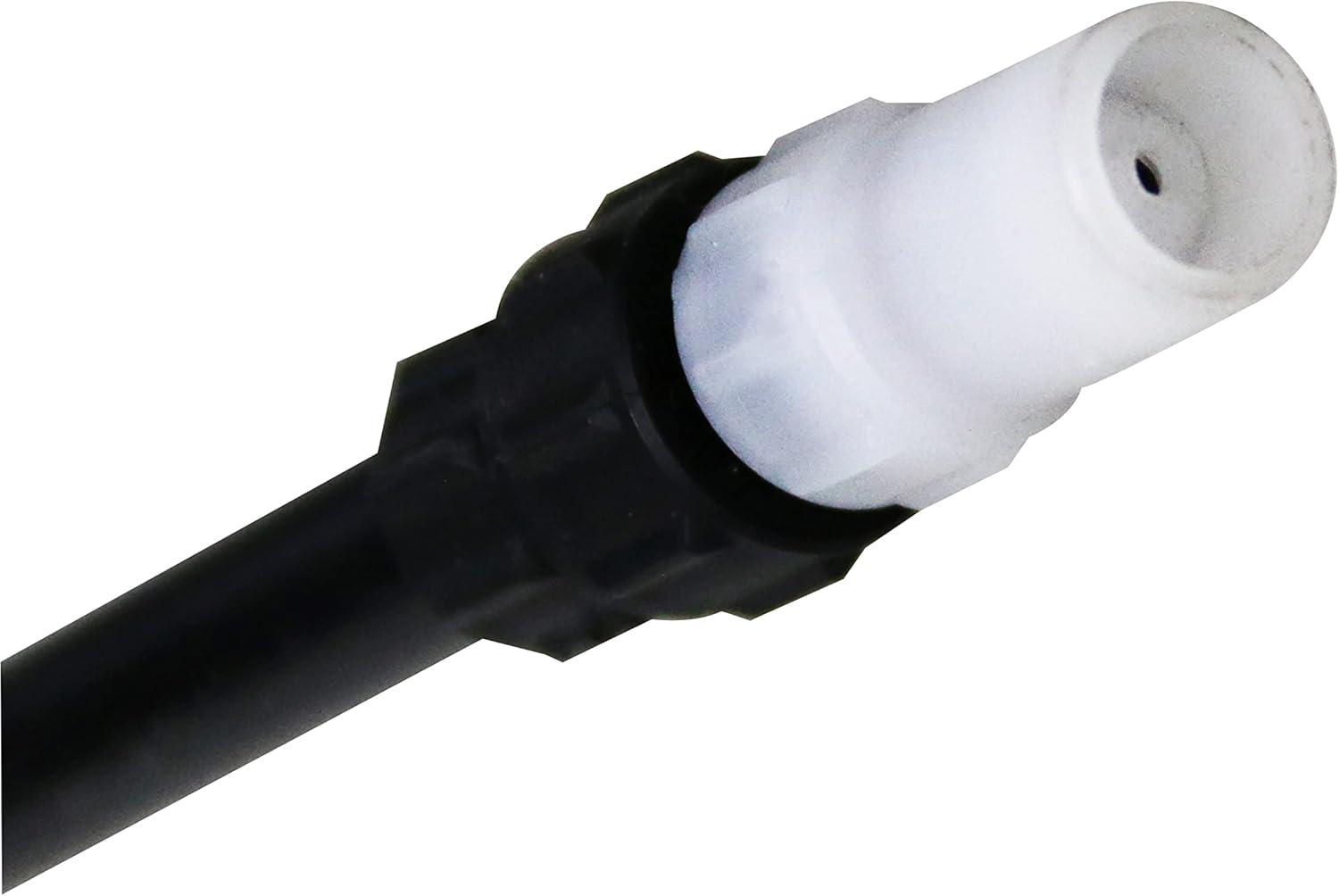 COMPONENTS: 18-inch curved poly spray wand, 192-inches of reinforced hose to reach farther along foliage and fence lines; shut-off with serviceable filter and lock-on feature for comfort and less hand fatigue