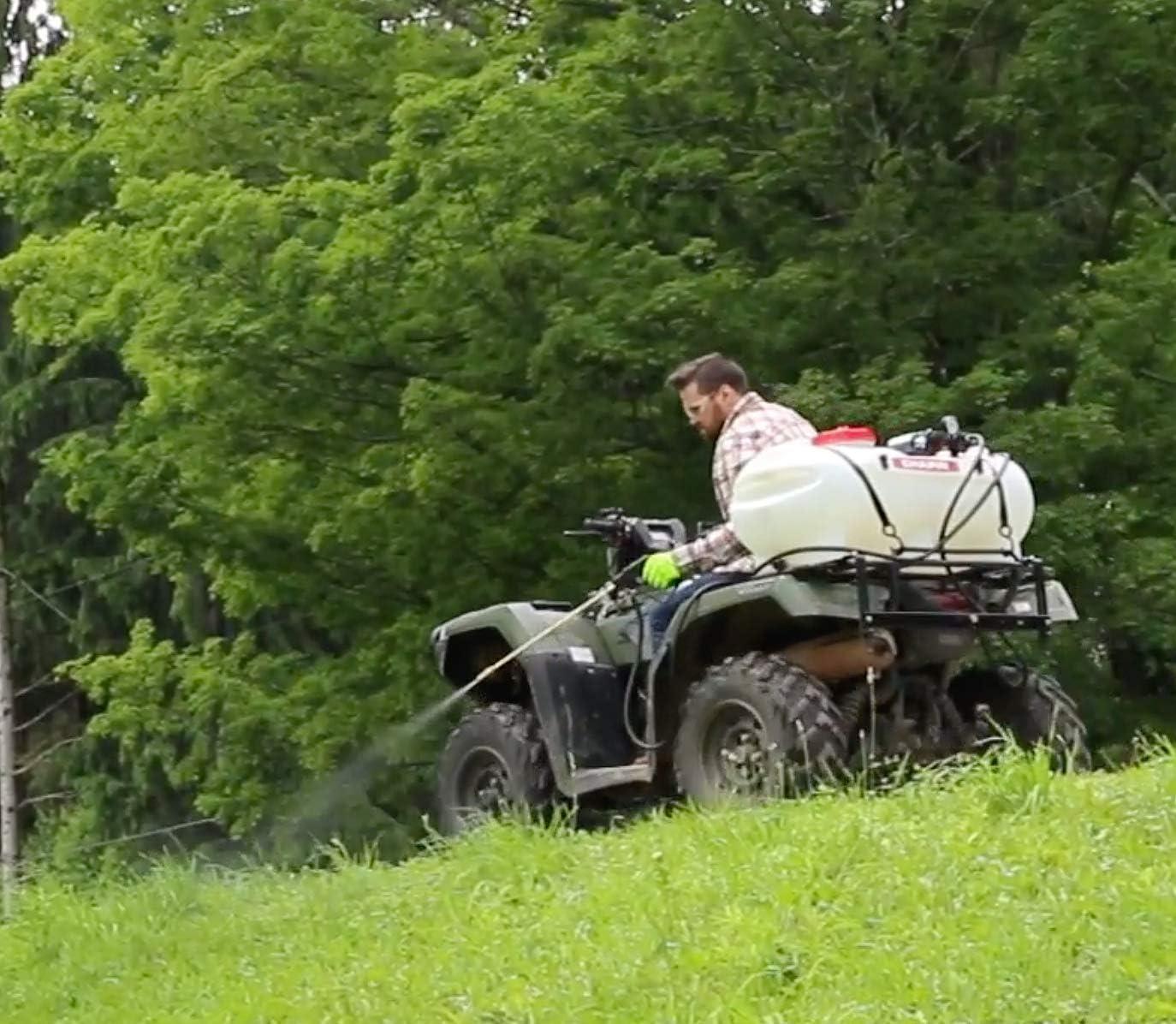 Chapin's 97500E 25-gallon 12V deluxe dripless EZ Mount ATV spot sprayer is configured to mount to a standard ATV, UTV or lawn tractor. Its 25-gallon heavy-duty, translucent, chemical resistant tank has a 6-inch wide tank opening for easy filling and mixing. Quickly connect the pump to your ATV battery with the included alligator clips. There’s a double filtration system and a pressure gauge (filter basket and shut-off filter). Add an optional 7-feet or 16-feet coverage spray boom kit to cover more ground (not included). Made in the USA with global materials and backed by Chapin’s 1-year limited warranty.