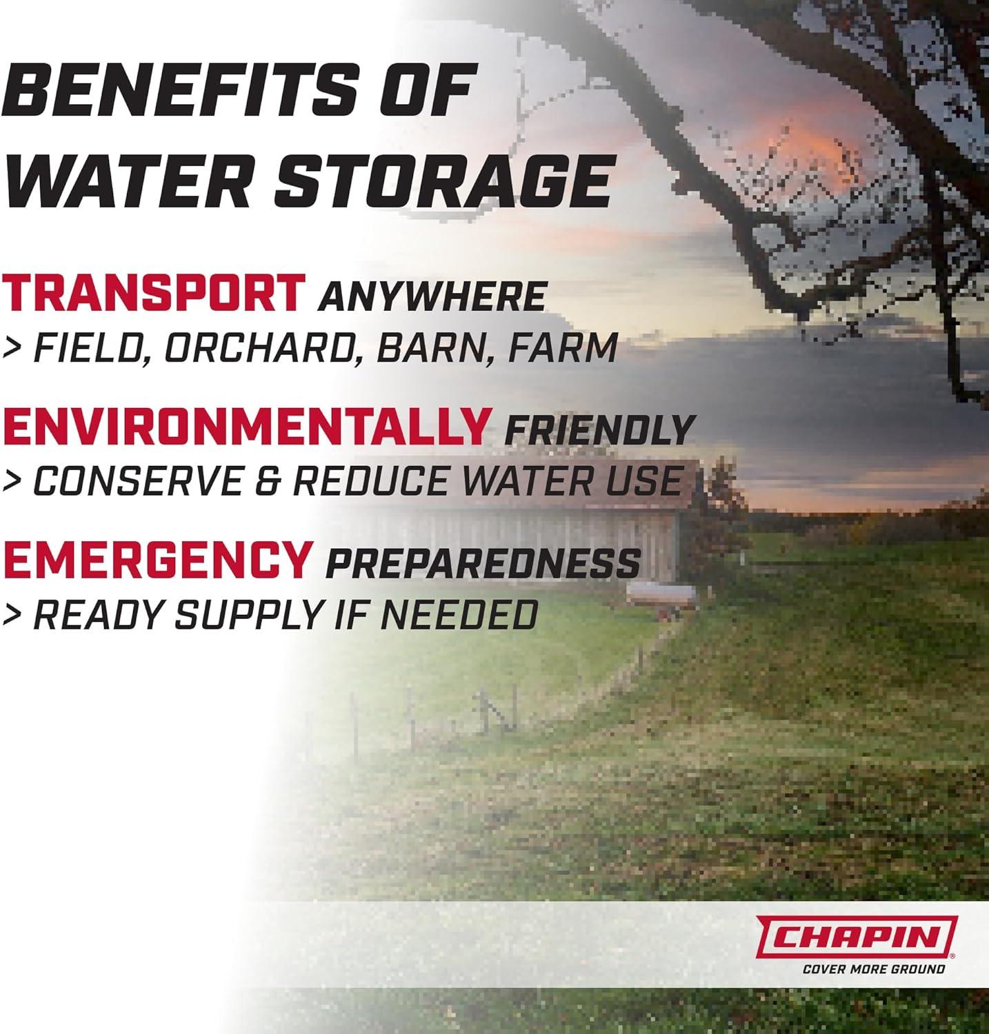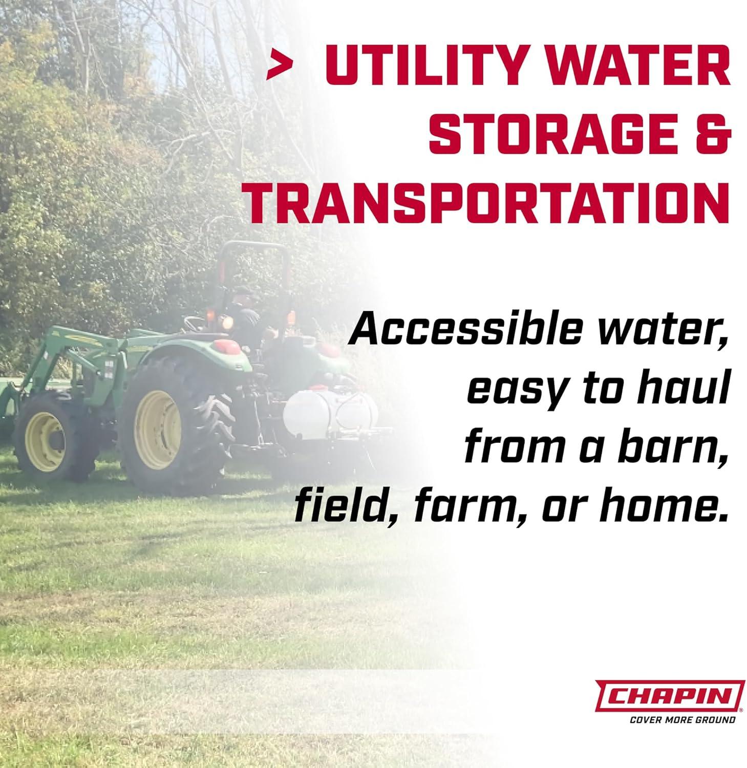 Be prepared with Chapin’s 40-gallon water tank. This general utility tank is UV protected and made from chemical-resistant poly. It’s translucent so you can see the liquid level and the 6-inch tank opening makes it easy to fill. Quickly empty the tank using the 2-inch drain with a 3/4-inch tethered cap. Hook it to a garden hose to drain if needed. You can transport it on a truck, trailer, or tractor. Made in the USA with global materials and backed by Chapin’s 1-year limited warranty.