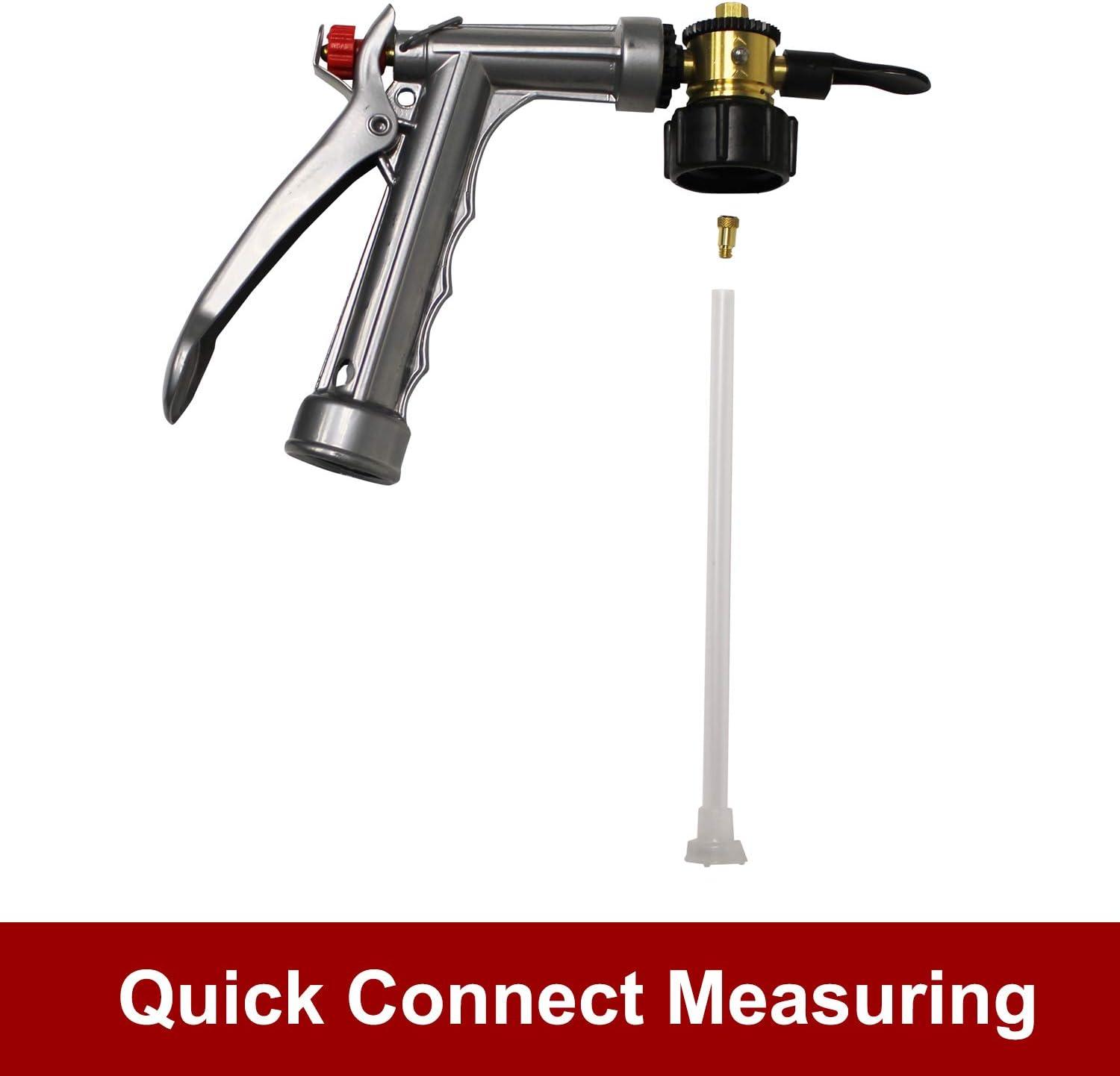 The Professional All Purpose sprayer fits onto any hose end and offers 16 mixing ratios, durable brass mixing head and sprays up to 100 gallons. A built-in anti-siphon feature prevents backflow. 3 simple steps: Fill, Set, Spray! It automatically mixes liquid concentrate with water. We also offer full technical support via our Customer Service Team