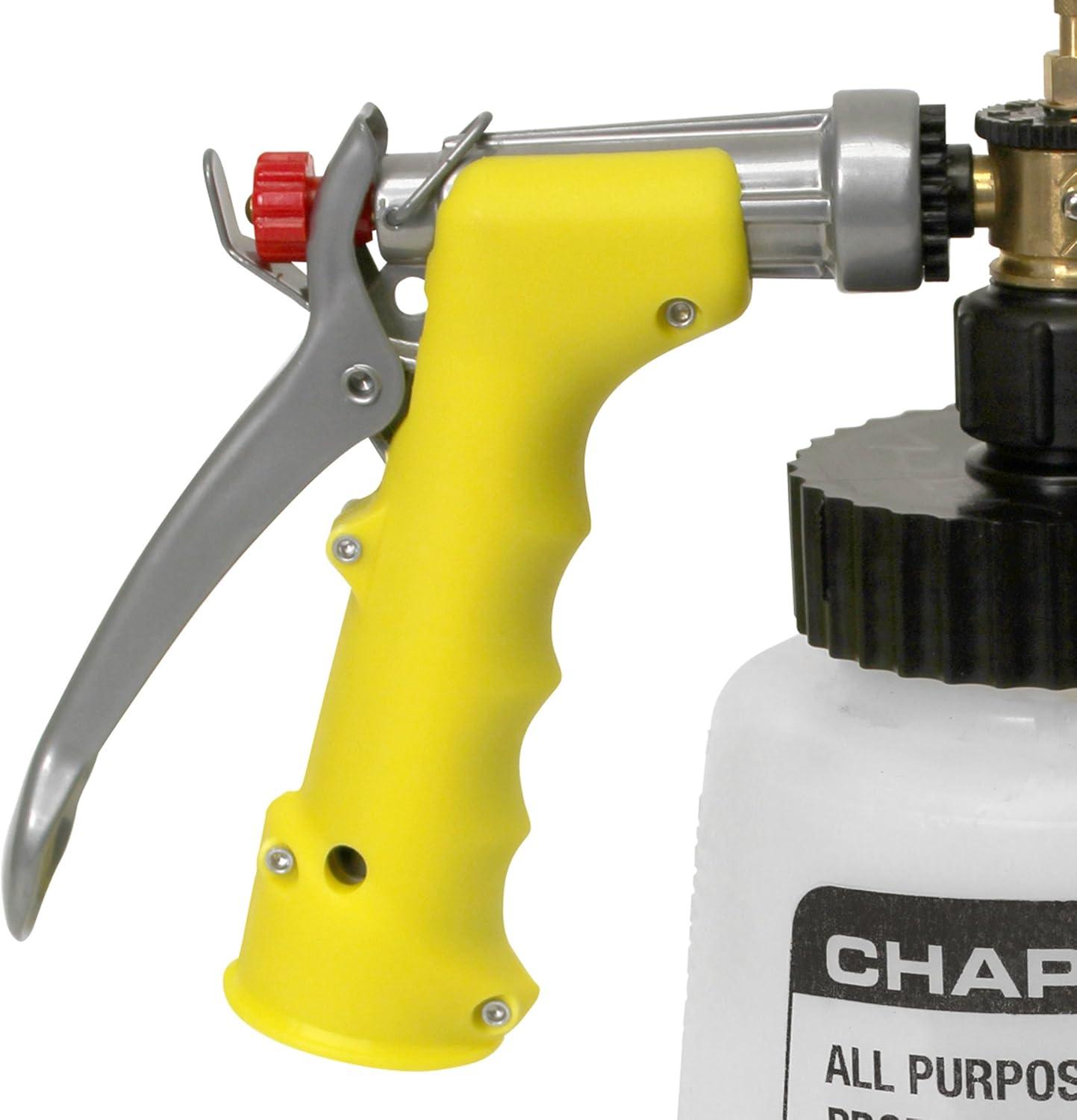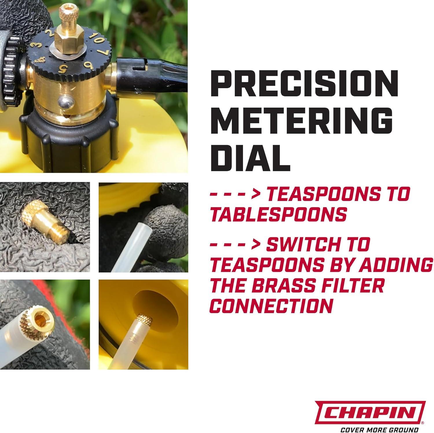 Fill, set and spray! Chapin's G364D professional hose-end sprayer automatically mixes the concentrate for you after you set the metering dial. Its 32-ounce concentrate tank can spray up to 320-gallons of your preferred mix. The G364D fits onto a standard garden house without an adapter, the comfort-grip handle limits fatigue and 16 mixing ratios keeps your chemical ratio dialed in precisely for your application. Take care of your garden, keep pests away and limit weeds in your lawn and garden with ease.