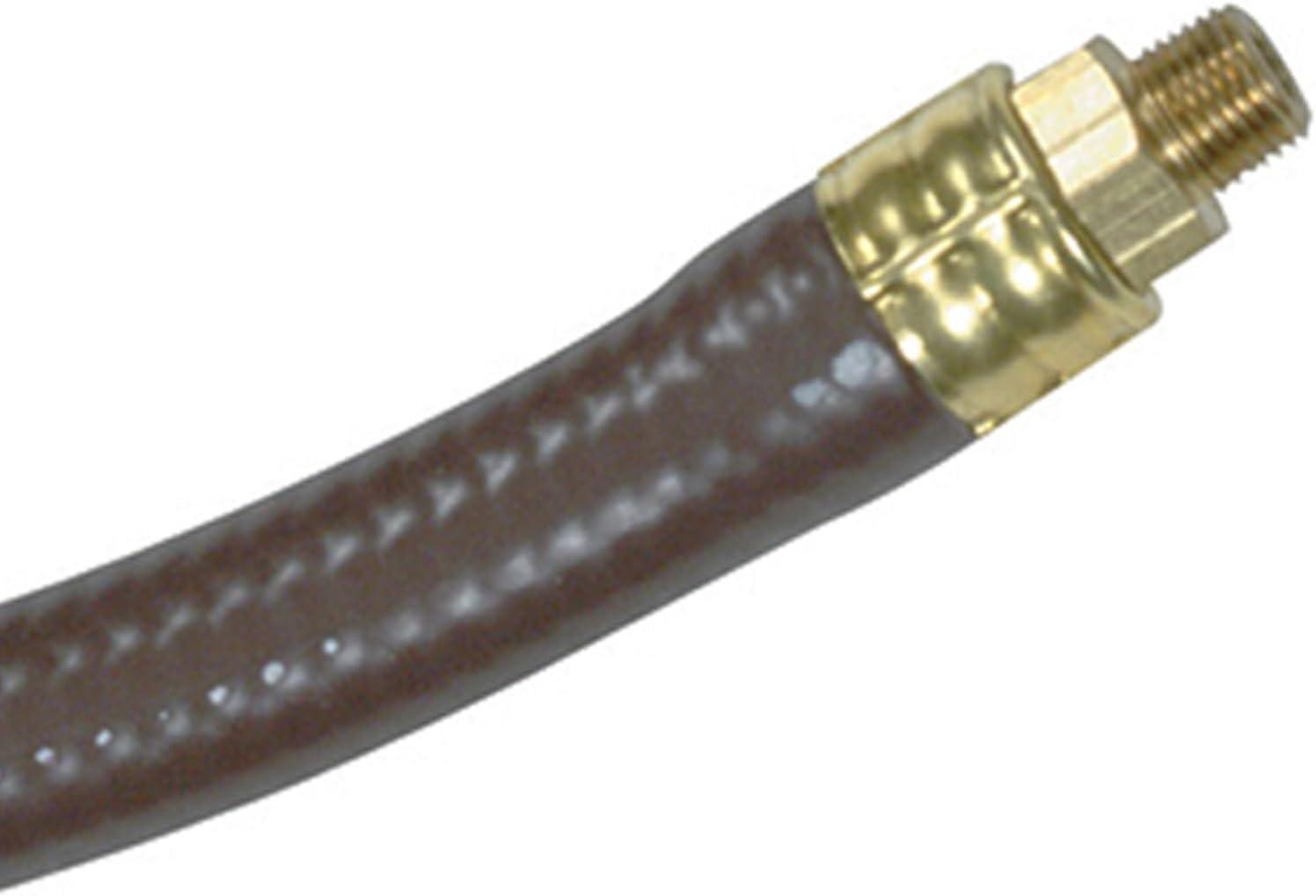 48-inch industrial hose and fittings features a threaded brass connection to tank
