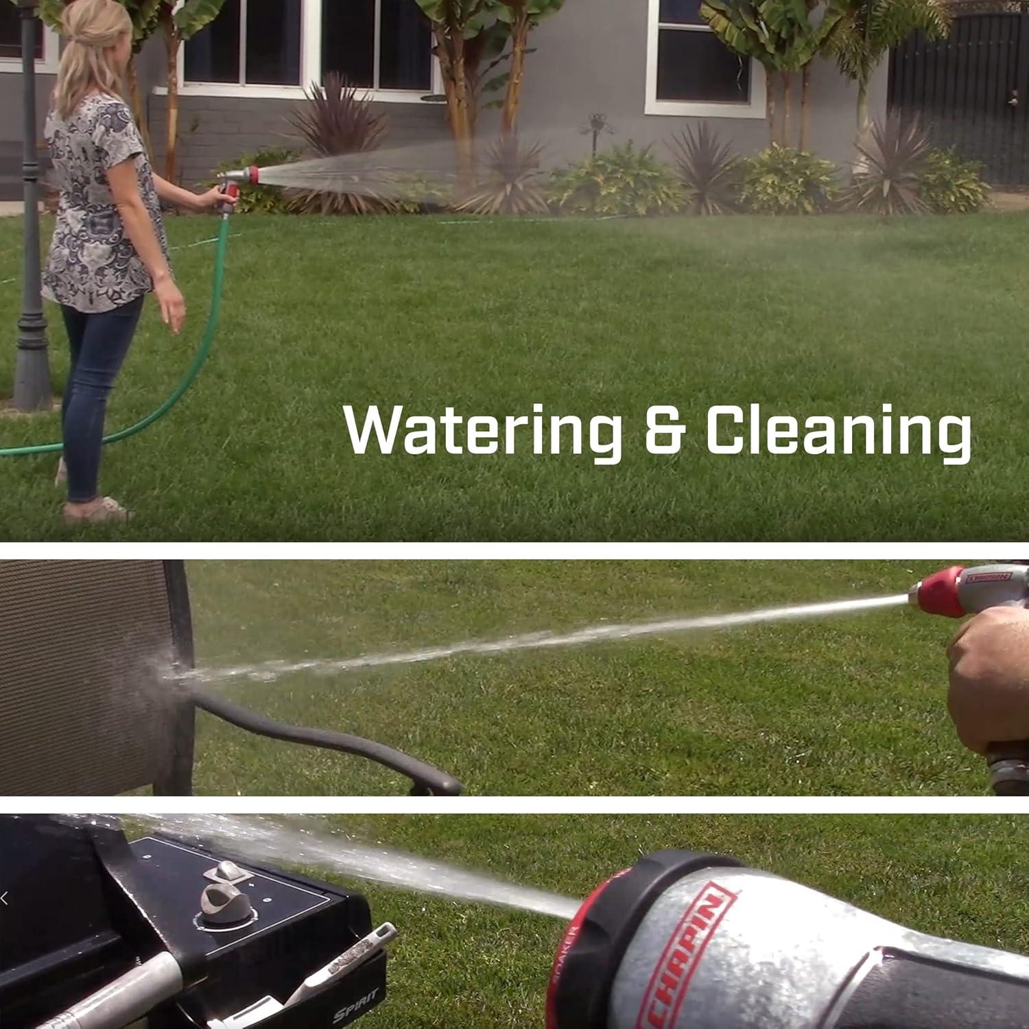 Watering your garden, showering your hanging plants or cleaning the patio? Your outdoor tasks are simple with Chapin’s 4610 professional-grade heavy-duty adjustable garden hose nozzle. It’s designed to last season after season and fit comfortably in your hand. A quick twist of the nozzle gives you seven different spray patterns depending on your application and its ergonomic, insulated, palm grip allows you to keep working comfortably. Quickly screws into a standard garden hose.