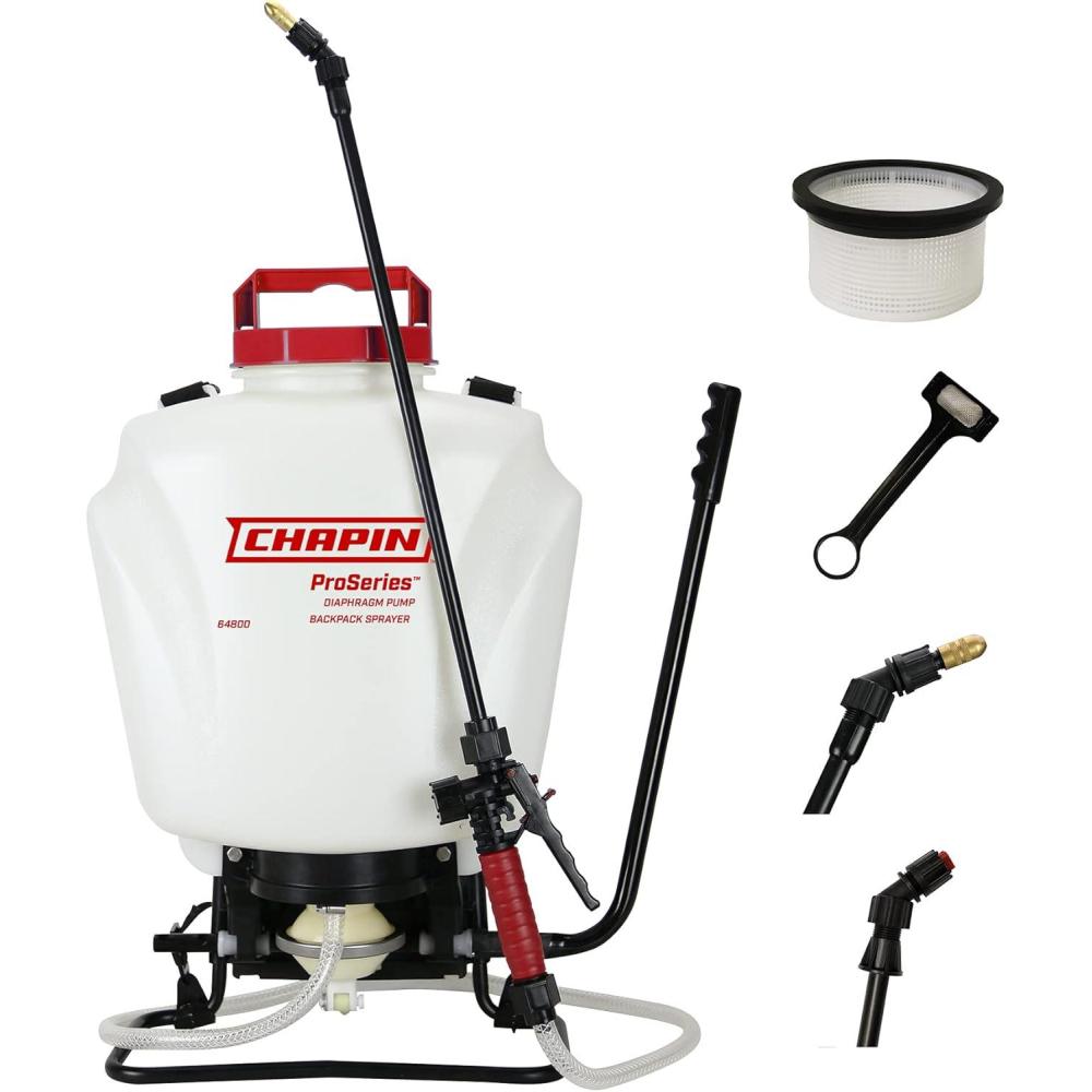 Chapin International 64800 4-Gallon ProSeries Liquid and Wettable Powder Diaphragm Pump Backpack Sprayer for Fertilizer, Herbicides and Pesticides, 4-Gallon (1 Sprayer/Package)