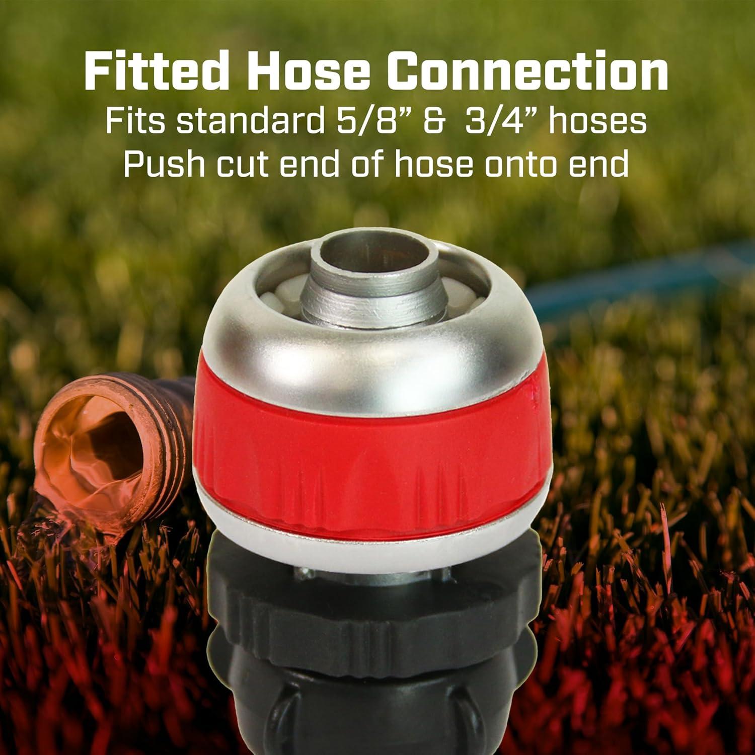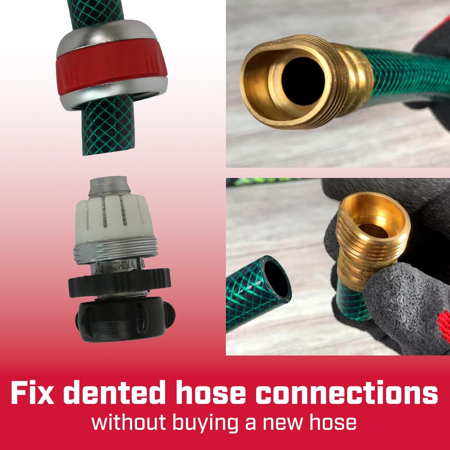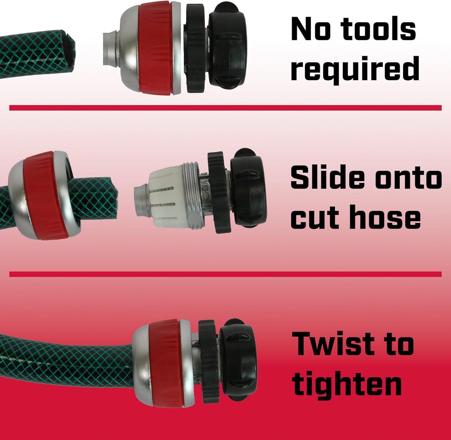 Due to weather, snags, or pets, garden hoses get holes and leak. Replacing a piece of the hose is cheaper than purchasing a new one. Chapin's 6-9484 tool-less male hose mender, with twist clamp, allows you to patch up your hose without purchasing new. Cut out the damaged part of your hose, attach the metal mender, reconnect to your section of hose and tighten with the clamp, providing a brand new threaded connection. Male connection to be attached to another hose or accessory. Ensure there's no leaks after install. Compatible with other genuine Chapin irrigation accessories.